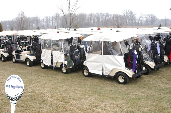 The day started out dry and bitter cold, with rain forecasted. The rain stayed away until the afternoon when things took a turn with rain and hail pelting the brave golfers. A few stuck out the weather and were able to finish all 18 holes, but many called it quits early and sought shelter in the clubhouse to await dinner.