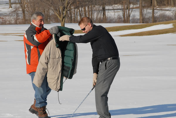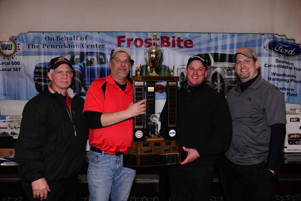 The FrostBite Open lived up to it’s name for the 25th Anniversary! The weather forecast leading up to the day called for rain and bitter cold. A few golfers were scared away, but that allowed us to call brave teams from our waitlist to come battle the elements.